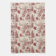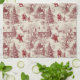 Traditional Santa Claus Red on Cream Toile De Jouy Tea Towel