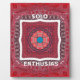White: Featured in the central square frame and the text "SOLO" and "ENTHUSIAS," white provides a striking contrast against the vibrant red, enhancing readability.