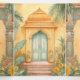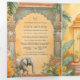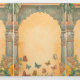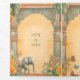Amaze your guests with this elegant south Indian theme wedding invite featuring beautiful traditional columns and vintage architectural elements decorated with marigold flowers and banana leaves.