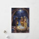 Share the true meaning of Christmas with this stunning flat holiday card featuring a traditional Nativity scene illustration. This artistic design depicts the Three Wise Men offering gifts to the newborn baby in the manger under a bright Star of Bethlehem in a peaceful, rustic stable. The deep colors, starry night sky, and dramatic light create a reverent, evocative, and timeless image. This card is an elegant and meaningful way to send Christmas greetings and wishes of peace and joy for the season.