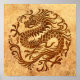 This flowing circular design features a flowing Chinese dragon. The body of the serpent snakes around from the top of the pattern down to the swirling tail. Four large claws extend from the body of the dragon creating an aggressive yet elegant stance. Rough textures and natural colors gives the pattern a worn vintage look. This beautiful pattern is a stylish take on the traditional Chinese dragon.