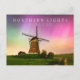 Traditional windmill under the Northern Lights Postcard