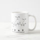 Trae spelled out in amino acids as T R A E (Threonine Arginine Alanine Glutamic acid) on a mug for the scientist in you.