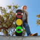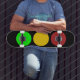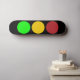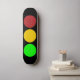 Stop red light, yellow caution yield light, go green with a bold jet black background colour.