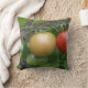 This awesome pillow features a photograph of a bunch of ripening tomatoes including a red, orange and green cherry tomato in a line, growing on a tomato plant in a suburban garden. The photograph was taken using macro photography for a detailed result.