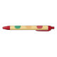 Painting of three circles, in red, yellow, and green, to represent traffic lights, is printed on custom pens.