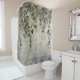 This beautiful biophilic shower curtain art in soft colours features trailing ivy hanging over a neutral background.