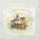 The cutest watercolor train engine inviting friends to a young boy's birthday party. This is the flat invitation version of this invitation, I have also made a postcard invitation replicating this one.