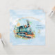 The cutest watercolor train engine inviting friends to a young boy's birthday party. This is the flat invitation version of this invitation, I have also made a postcard invitation replicating this one.