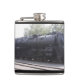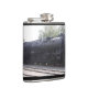 A flask featuring a photo of a train engine.