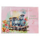 The cutest watercolor train engine inviting friends to a young girl's birthday party.