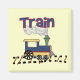 Primary colours train on a track and blue text edged in red that reads "Train" on train T-shirts, mugs, mousepads, tote bags, and other train gear, perfect for the little engineer or conductor!