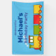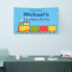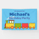 Colourful cartoon toy train on a blue banner. Templates to add your name.