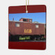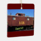 at christmass as a hanging decration for the chritmass tree.. its white porcline or cramic but very well made with added photo on one side.. also has a lovley red bag to keep it in.. execlent printed text in bold and black stands out well aganst the blue background of the photo.