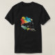 I give wanted to give this a 4 instead of a 5 because these Basic DARK T0shirts run unexpectedly SLIM or Narrow. Which is great if you do not have a potbelly, but I have a paunch. It isn't the shirt's fault that I've got a beer belly. The design and shirt itself is a quality cotton shirt. The color is more of a deep purple, but still a very pretty color. The Basic DARK T-shirts run a bit SLIMMER than the Basic Ts. The neck is a fraction narrower (or seems to be narrower) also. I'm a paunchy middle-aged woman and my neck is 12 inches (31cm) thick and the neckline fell about the same as in the photo of the man, and I had the desire to tug it a bit. So if you're a thick necked man or like loose shirts, be aware these are slimmer shirts. Once I get rid of my lockdown paunch it'll look great. The shirt washed well in cold water with no apparent bleeding. We don't have a dryer, so it hung dry. Did not shrink. Love the colors and the design. The design looks smaller on my shirt than it does on the model on-line. But still, it looks good on the shirt. The printing looks as it does on the model, just the size seems fractionally smaller. Washed garment in cold water, hung dry and design appeared unaffected.