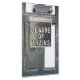 An art design of old door of the booking office on the train station platform with a warning of no admittance and beware of the trains from the steam train era.