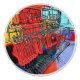 An art design of an old railway signal box from the days of steam trains, showing the levers used to alter the train tracks.