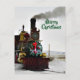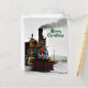 This Christmas postcard is a good choice for men who want to send holiday greetings to customers, family, and your friends. Designed from a photograph of a vintage train with illustrated Christmas wreath and red bow.