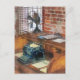 Designs by Susan Savad -- The station master was the person in charge of the railway station. This quaint station master's office contains an old fashioned typewriter and an vintage fan with blades on a wooden desk with cubbyholes.