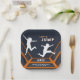 Orange and grey trampoline park 10th birthday party paper plates. Personalise it with your event details. Great for kids party.