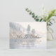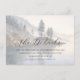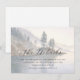 This wedding enclosure card features a serene watercolor landscape with soft blues and greens, capturing the tranquillity of a lakeside scene. The design includes stylised pine trees on gentle slopes, creating a peaceful and natural atmosphere. Elegant script typography highlights "The Details," while smaller serif font provides additional information, offering a sophisticated contrast. Perfect for conveying essential event details, this card exudes a calm and inviting mood, ideal for weddings or special occasions.