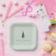 These elegant paper plates feature a minimalist design with a centered evergreen tree illustration on a soft, muted green background. The clean, sans-serif typography adds a modern touch, making them perfect for formal occasions like weddings or sophisticated gatherings. The serene and balanced composition creates a tranquil atmosphere, ideal for celebrating special moments in style.