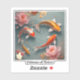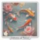 A minimalist artwork capturing the serene beauty of a koi pond, where graceful fish glide beneath the water's surface. Subtle rose and gold accents evoke a sense of peace and harmony, while symbolising good fortune and the timeless tranquillity of nature's delicate balance. "Original Image was generated by Meta AI. AI generated artwork. Licensed under CC BY-SA 4.0."