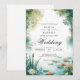 A serene natural scene unfolds with delicate aquatic blooms and lush greenery framing this elegant event. The tranquil atmosphere evokes a sense of peaceful romance.
