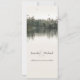 This waterside evergreen trees slender vertical rustic wedding invitation card features a peaceful scene at the top third of the card composed of distant evergreens and rock structures reflected on the surface of a calm, lightly rippled body of water under an overcast sky from the point of view of a paddler sitting in a kayak on the water, and two eagles or ospreys can be seen flying above in the distance - customise your celebration details on the bottom portion of the card | the lakeside image has the look of an antique photograph with sepia toning | part of the Mountain Lake Rustic Wedding Collection by katz_d_zynes >> https://www.zazzle.com/collections/119499271518309609