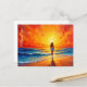 Tranquil shore walk sunset ocean bright art postcard