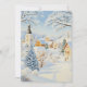 This beautiful Christmas card captures a tranquil village nestled in a pristine snowy landscape, with a charming church steeple rising amidst frosty trees and cosy homes. The scene radiates peace and festive warmth, perfect for spreading holiday joy to friends and family. Customise the text to add a personal message, making this card uniquely yours for the holiday season.