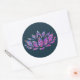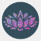 Decorate in style with these serene meditation inspired stickers. This design features a dark teal striped background and a purple rainbow lotus flower print. Great for lovers of meditation, yoga, and peaceful zen inspired styles! This design is also available on a notebook, pen, and a tote bag.