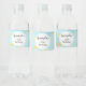 Water bottle labels with a serene summery design. Turquoise / aqua green watercolor image with a wavy faux gold border. Elegant and lovely.