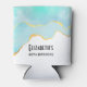 Birthday or other event can cooler with a serene summery design. Turquoise / aqua green watercolor image with a wavy faux gold border. Elegant and lovely.
