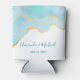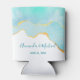 Wedding can cooler with a serene summery design. Turquoise / aqua green watercolor image with a wavy faux gold border. Elegant and lovely.