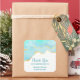 Wedding favour thank you stickers with a serene summery design. Turquoise / aqua green watercolor image with a wavy faux gold border. Elegant and lovely.