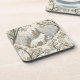 This serene winter forest coaster features a majestic white wolf at its centre, surrounded by snow-dusted trees in soft tones of cream, brown, grey, and pale blue. A second wolf is subtly nestled in the lower corner, hinting at unseen life within the quiet woodland. With a mix of bare-branched and evergreen trees, framed by delicate decorative elements, this design evokes natural beauty, stillness, and a touch of winter magic. Perfect for nature lovers, animal enthusiasts, and seasonal or fantasy-themed settings.