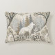 This serene winter forest throw pillow features a majestic white wolf at its centre, surrounded by snow-dusted trees in soft tones of cream, brown, grey, and pale blue. A second wolf is subtly nestled in the lower corner, hinting at unseen life within the quiet woodland. With a mix of bare-branched and evergreen trees, framed by delicate decorative elements, this design evokes natural beauty, stillness, and a touch of winter magic. Perfect for nature lovers, animal enthusiasts, and seasonal or fantasy-themed settings.