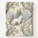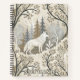 This serene winter forest spiral notebook features a majestic white wolf at its centre, surrounded by snow-dusted trees in soft tones of cream, brown, grey, and pale blue. A second wolf is subtly nestled in the lower corner, hinting at unseen life within the quiet woodland. With a mix of bare-branched and evergreen trees, framed by delicate decorative elements, this design evokes natural beauty, stillness, and a touch of winter magic. Perfect for nature lovers, animal enthusiasts, and seasonal or fantasy-themed settings.