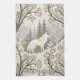 This serene winter forest kitchen towel features a majestic white wolf at its centre, surrounded by snow-dusted trees in soft tones of cream, brown, grey, and pale blue. A second wolf is subtly nestled in the lower corner, hinting at unseen life within the quiet woodland. With a mix of bare-branched and evergreen trees, framed by delicate decorative elements, this design evokes natural beauty, stillness, and a touch of winter magic. Perfect for nature lovers, animal enthusiasts, and seasonal or fantasy-themed settings.