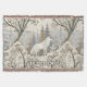 This serene winter forest blanket features a majestic white wolf at its centre, surrounded by snow-dusted trees in soft tones of cream, brown, grey, and pale blue. A second wolf is subtly nestled in the lower corner, hinting at unseen life within the quiet woodland. With a mix of bare-branched and evergreen trees, framed by delicate decorative elements, this design evokes natural beauty, stillness, and a touch of winter magic. Perfect for nature lovers, animal enthusiasts, and seasonal or fantasy-themed settings.