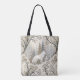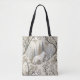 This serene winter forest tote bag features a majestic white wolf at its centre, surrounded by snow-dusted trees in soft tones of cream, brown, grey, and pale blue. A second wolf is subtly nestled in the lower corner, hinting at unseen life within the quiet woodland. With a mix of bare-branched and evergreen trees, framed by delicate decorative elements, this design evokes natural beauty, stillness, and a touch of winter magic. Perfect for nature lovers, animal enthusiasts, and seasonal or fantasy-themed settings.