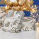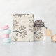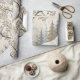 This serene winter forest wrapping paper features a majestic white wolf at its centre, surrounded by snow-dusted trees in soft tones of cream, brown, grey, and pale blue. A second wolf is subtly nestled in the lower corner, hinting at unseen life within the quiet woodland. With a mix of bare-branched and evergreen trees, framed by delicate decorative elements, this design evokes natural beauty, stillness, and a touch of winter magic. Perfect for nature lovers, animal enthusiasts, and seasonal or fantasy-themed settings.