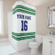TRANS 2X Forest Green Stripes navy text Shower Curtain