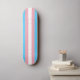 This design features the Transgender Pride Flag, which is intended to represent transgender communities, organisations and individuals around the world. It was designed by Monica Helms, a transgender activist, author and veteran of the United States Navy. She describes the flag as follows: "The stripes at the top and bottom are light blue, the traditional colour for baby boys. The stripes next to them are pink, the traditional colour for baby girls. The stripe in the middle is white, for those who are transitioning or consider themselves having a neutral or undefined gender."