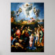 Raffaello Sanzio da Urbino (March 28 or April 6, 1483 – April 6, 1520), known as Raphael was an Italian painter and architect of the High Renaissance. His work is admired for its clarity of form, ease of composition, and visual achievement of the Neoplatonic ideal of human grandeur. Together with Michelangelo and Leonardo da Vinci, he forms the traditional trinity of great masters of that period. Raphael was enormously productive, running an unusually large workshop and, despite his early death at 37, leaving a large body of work. Many of his works are found in the Vatican Palace, where the frescoed Raphael Rooms were the central, and the largest, work of his career. The best known work is The School of Athens in the Vatican Stanza della Segnatura. After his early years in Rome, much of his work was executed by his workshop from his drawings, with considerable loss of quality. He was extremely influential in his lifetime, though outside Rome his work was mostly known from his collaborative printmaking. Quote:Wikipedia