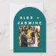 The Aesthetic: Make a sophisticated statement with our signature arched wedding invitation. This design features a striking colour-block of Transformative Teal—the hero hue of 2026—set against a crisp, modern off-white. The front showcases bold, editorial-style typography that commands attention, while the reverse side reveals a "Digital Futurism" geometric motif, providing a sophisticated surprise when guests flip the card over.
