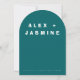 The Aesthetic: Make a sophisticated statement with our signature arched wedding invitation. This design features a striking color-block of Transformative Teal—the hero hue of 2026—set against a crisp, modern off-white. The front showcases bold, editorial-style typography that commands attention, while the reverse side reveals a "Digital Futurism" geometric motif, providing a sophisticated surprise when guests flip the card over.