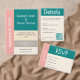This modern city wedding design features a clean color block design created for contemporary and urban celebrations. The minimalist layout combines refined typography with a carefully balanced palette of transformative teal, soft champagne, dusty coral, and warm gray, delivering a stylish and elegant look.