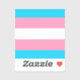 Sicker with a trans flag in light blue, pink and white. Stick on your water bottle, phone case, tablet care or notebook and show your pride.